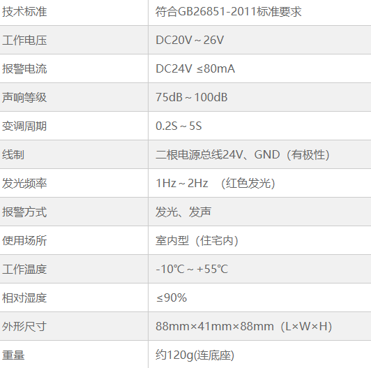 具有2種報(bào)警聲調(diào),聲壓級高、功耗低、工作可靠