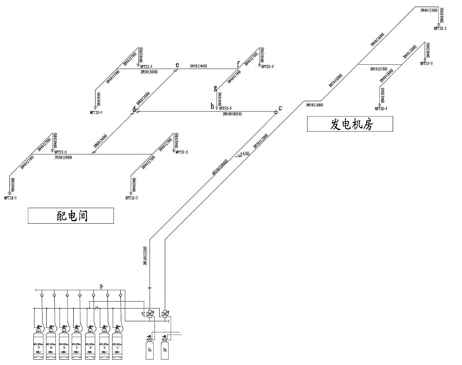 該工程爲某商業大廈地下二層氣體消防工程,首先明確建築物本身的建築特點和功能特點,瞭解該建築地下二層的防火工程設計中其它專業的設施及對消防專業的設計要求,然後根據有關規範對建築物定性,確定系統的總體結構。按照氣體滅火設計規範,該樓層配電房、發電機房、油庫不能應用水噴淋滅火系統,因此選用氣體滅火系統方案,以確保消防滅火的可靠性