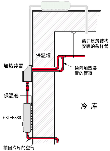 冷庫中採(cǎi)樣管,加熱箱和吸氣式感煙火災探測(cè)器的相對位置