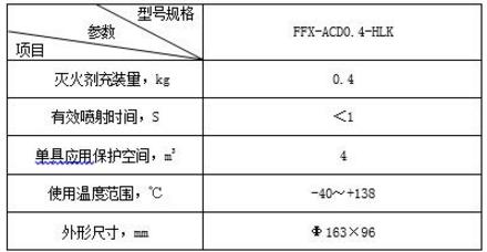 發動機艙(cāng)用超細幹粉自動滅火裝置主要技術參(cān)數