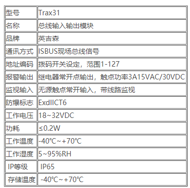 三、Trax31總線輸入輸出模塊技術參數