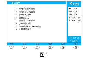 ① 按“功能”鍵,進入選項菜單,按“F4 安裝” 鍵,輸入二級密碼,按“確認”鍵,進入安裝菜單界面(圖1)。