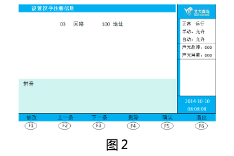 ② 按數字“5”鍵,進入設置漢字注釋信息界面, 輸入2位回路、3位地址,按“編輯”鍵,操作數字鍵進行編輯(圖2),按“符号”鍵進行英文-機内碼-數字-拼音輸入切換,通過上下左右鍵進行選擇。