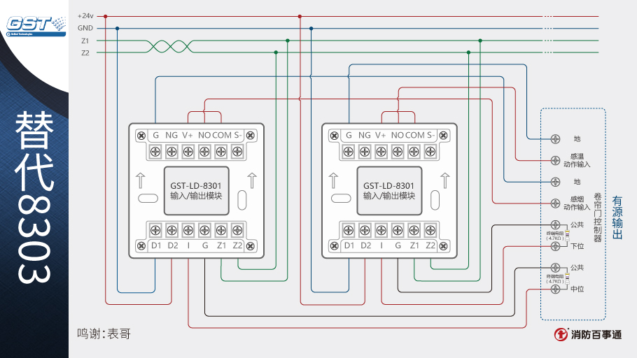 1、海灣8301模塊可以替代海灣的8303模塊控制防火卷簾,兩個8301模塊相當於1個8303模塊。